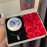 گردنبند مروارید صدفی وارداتی ولنتاین با جعبه گل رز معطر